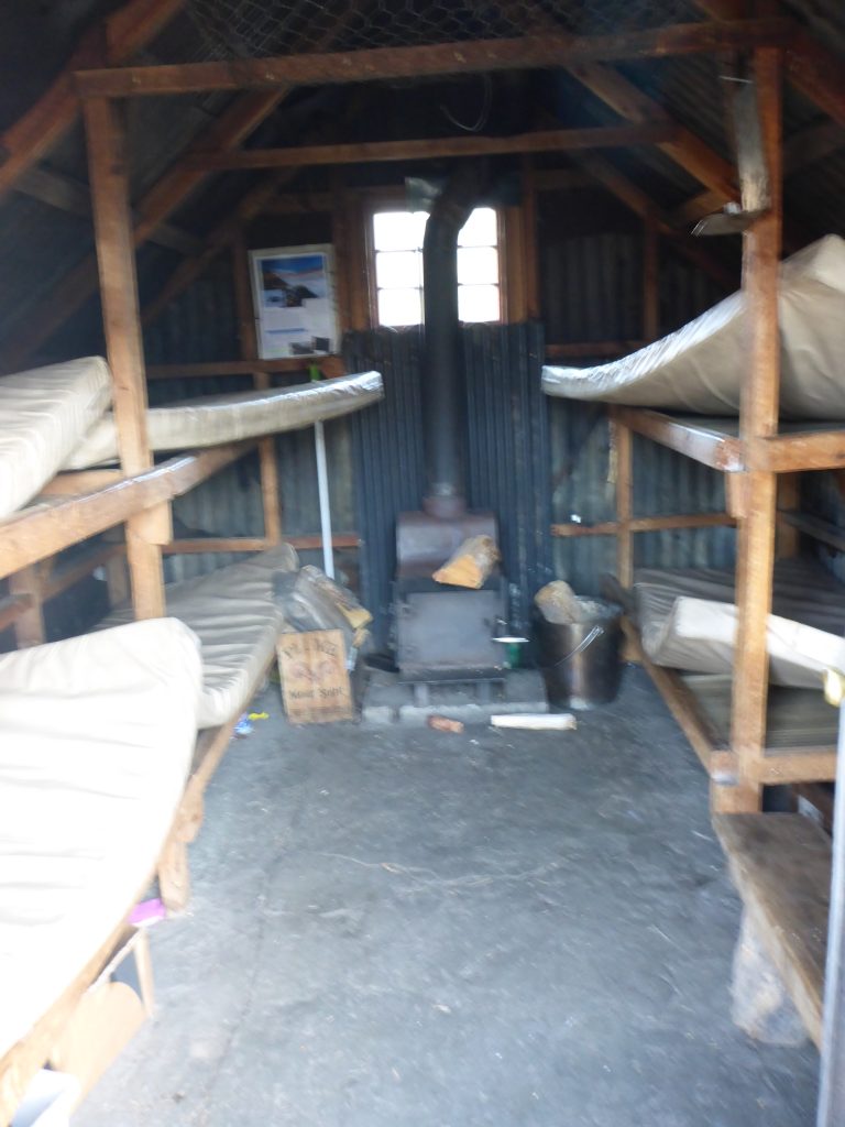 The inside of Camp Stream Hut. It was very crowded the previous night with 6 trappers and their wet gear.