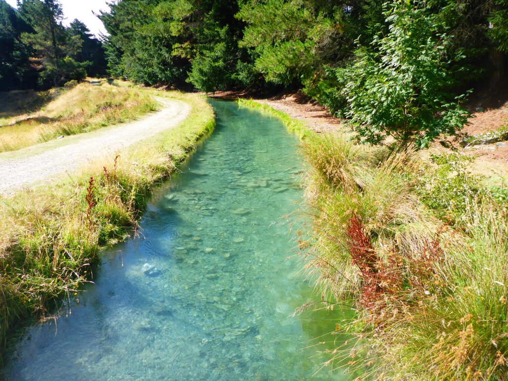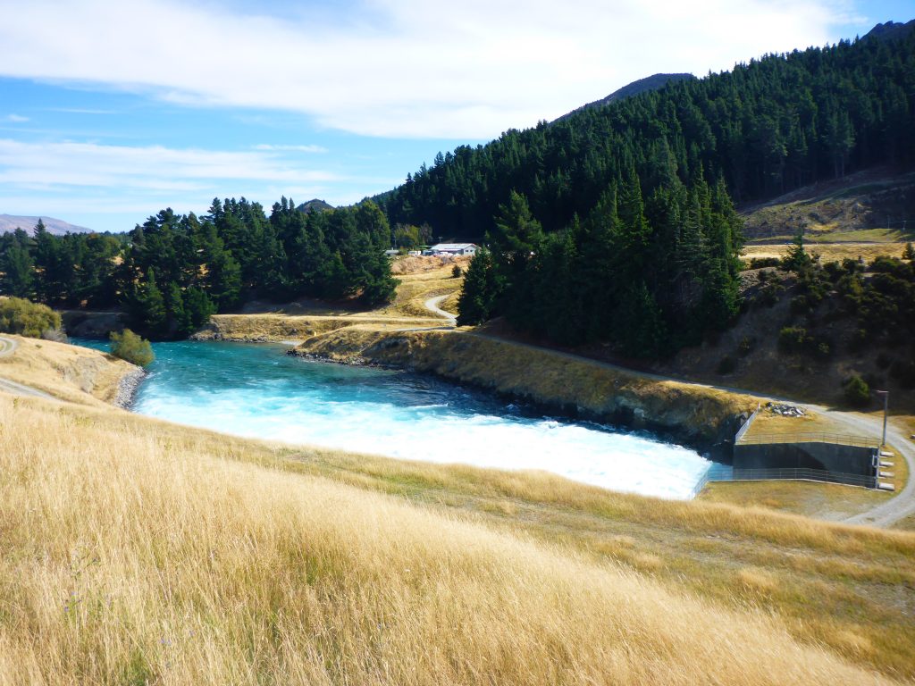At 4:15pm I continued on, after ordering a chocolate donut and pineapple ring to take away for dinner. I got going very slowly, feeling to full to really move still, but I had planned to get to Albert town for the night, as camping there is only 7$. So I ventured on. Past the Lake Hawea control gates, creating the Hawea River.