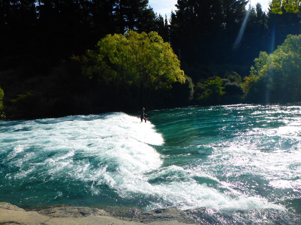 After about an hour I came about a part of the river, where a standing wave has been created. Parts of the river were reshaped to create a funpark for Kajaks. Here I found a bunch of people surfing in the wave. I made a stop and sat down to watch them for about half an hour. It was interesting to see and I would have liked to give it a try as well, but I couldn’t be bothered to get wet.