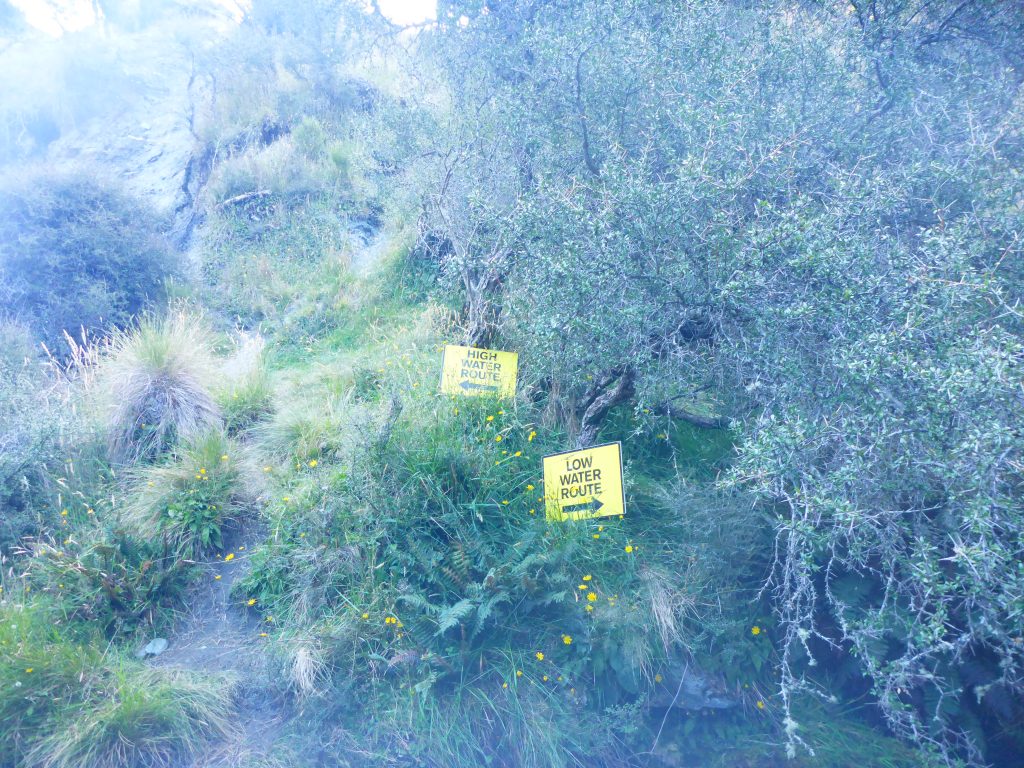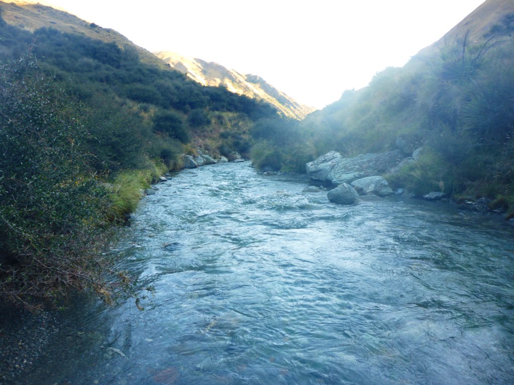 The track didn’t follow the ridgeline completely down though, Halfway down, it diverted from the ridge and continued down with switchbacks down to the river. Once I left the ridge, the sun also started disappearing behind the surrounding mountains, and I was walking in the shade now. You can really feel that it is starting to get dark sooner now. Upon reaching the river, I had the option of walking in the riverbed until macetown, or following the highwater path. As the path included further ups and down beside the river, I didn’t really fancy it and decided to go into the river. I haven’t had wet feet in a couple of days, good idea to give them a clean;)