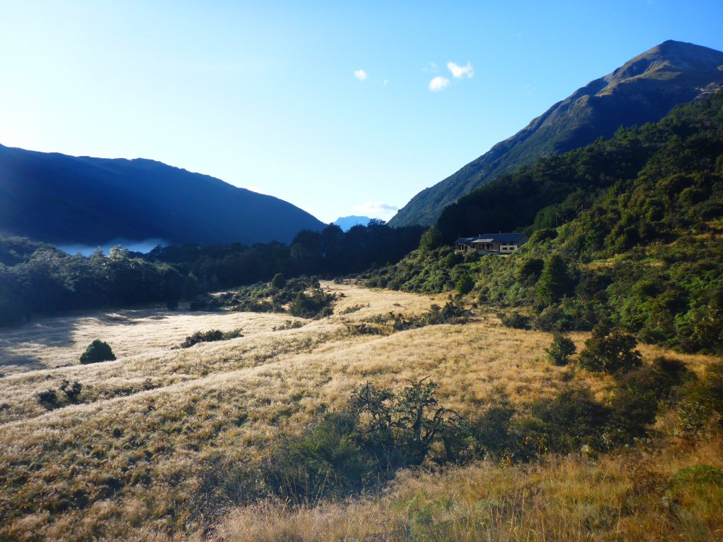 By 3pm I reached McKellar Hut, which is quite a big hut with 2 seperate sleeping rooms fr 24 people. Outside of the hut the 4 guys from the previous day were already seated, having a smoke and enjoying the view. We talked a bit and I was informed that they moved into the dorm adjoining the main part of the hut and I could have the other room. So I moved my stuff in there and got settled.
