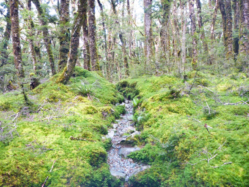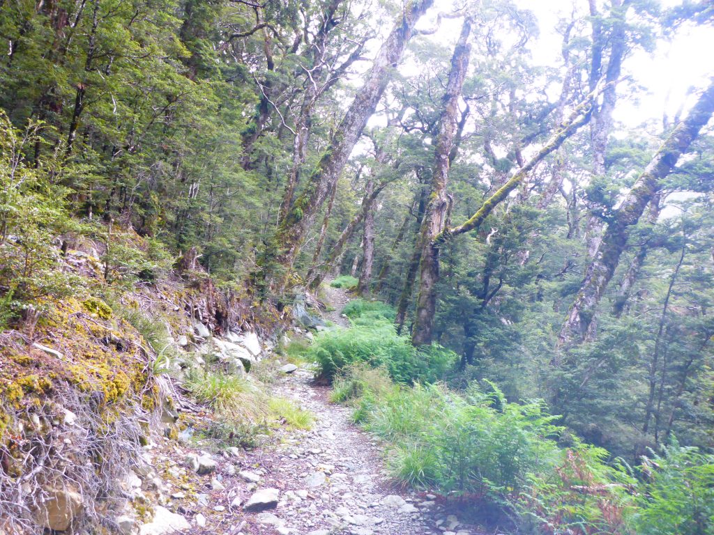 After about an hour the path went back into the forest, slightly moving upwards towards McKellar Saddle. On this stretch a kiwi couple crossed my path, walking the track in the opposite direction.