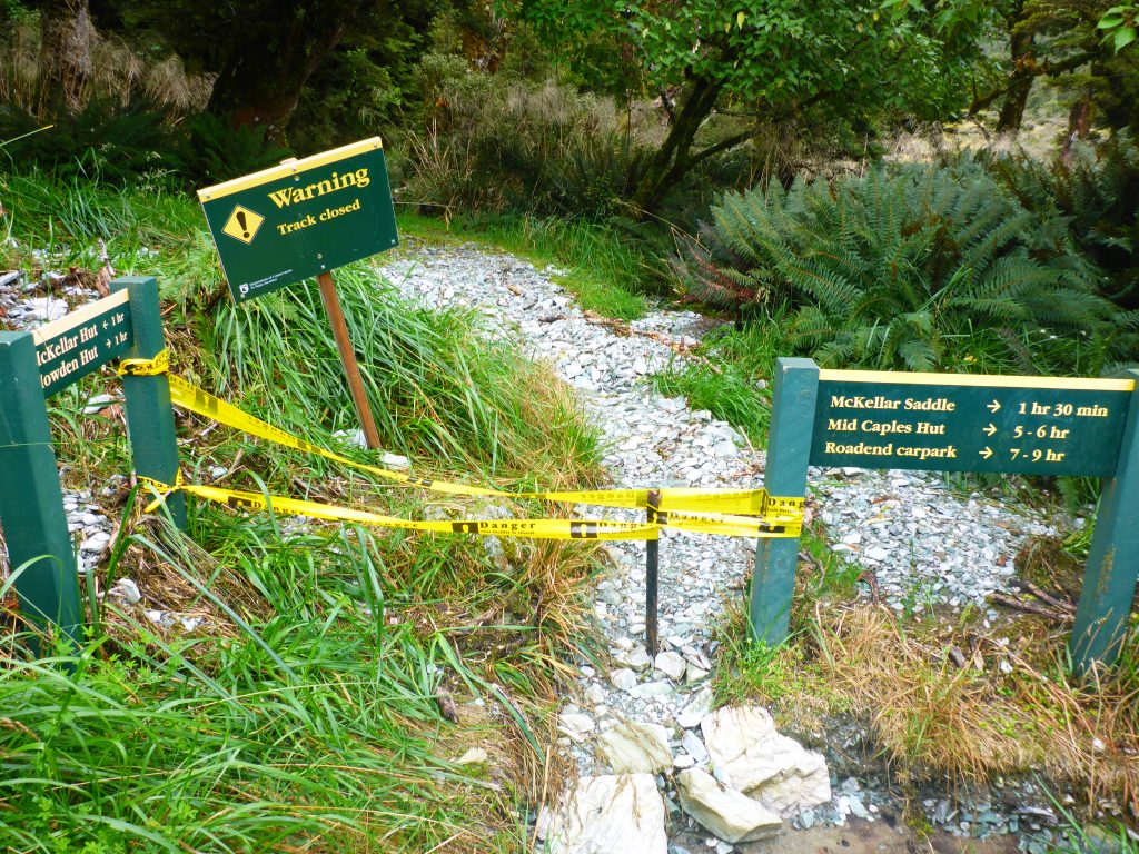 After crossing the water I came upon the where the path splits of towards the Routeburn track. Here the path was fenced off to prevent people from venturing further.