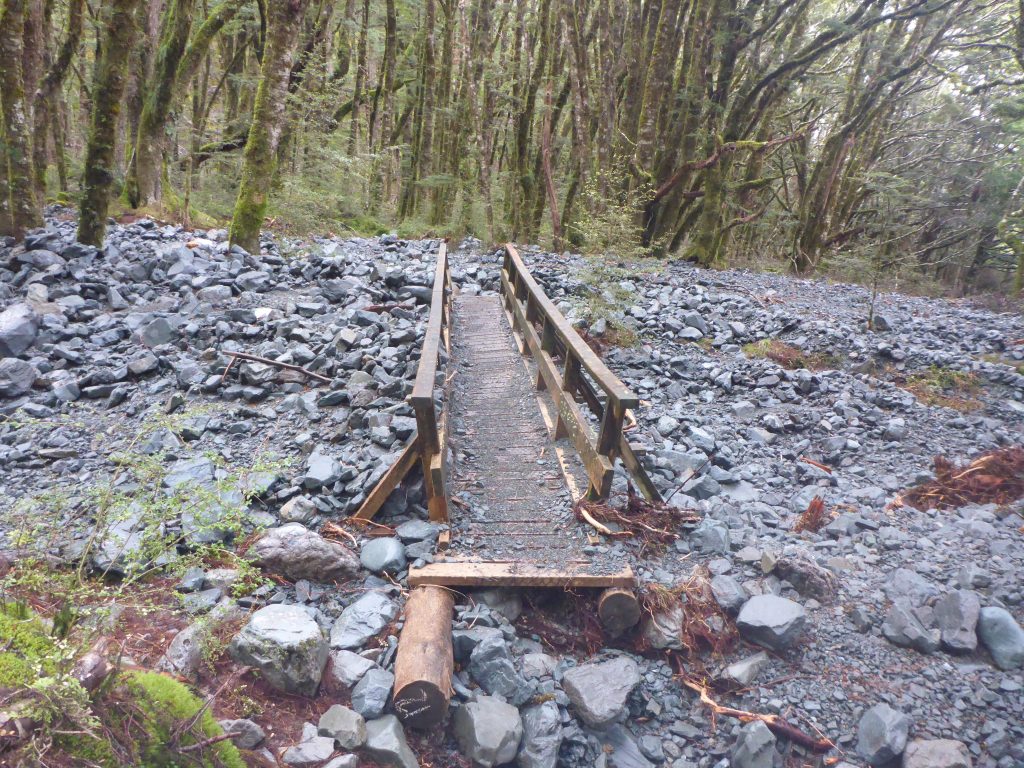 As it had rained throughout the night, everything was quite wet outside and I was slow to get moving. By 9:30am I set off to go. Immediately upon starting my feet were wet from the wet grass. Within 10 min there was a very sturdy bridge crossing the stream into the valley. This will later become a much bigger stream.