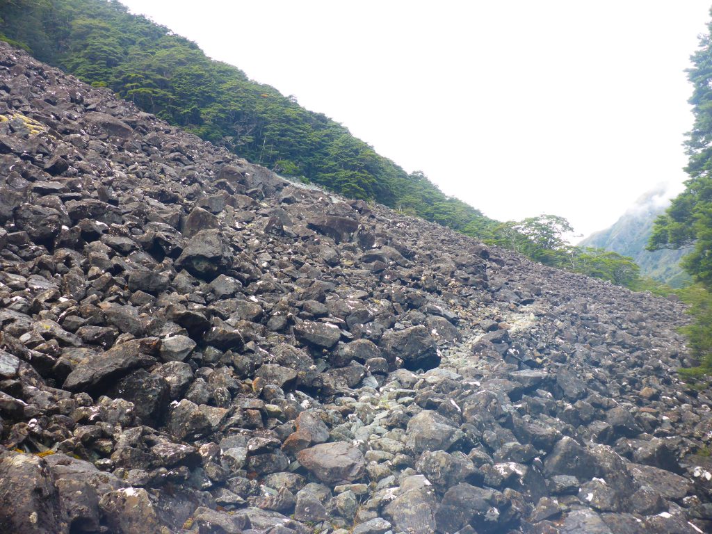 In the middle of the forest came a boulder field to cross. Due to the rain it was a bit slippery, but not as bad as the muddy sections in the forest.