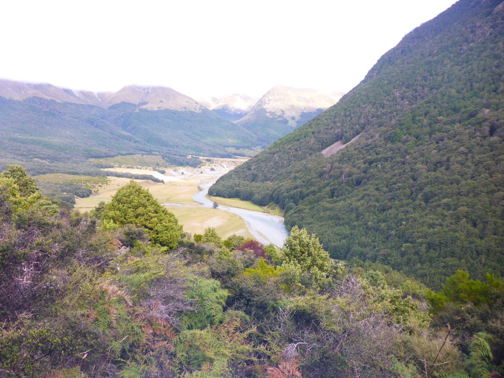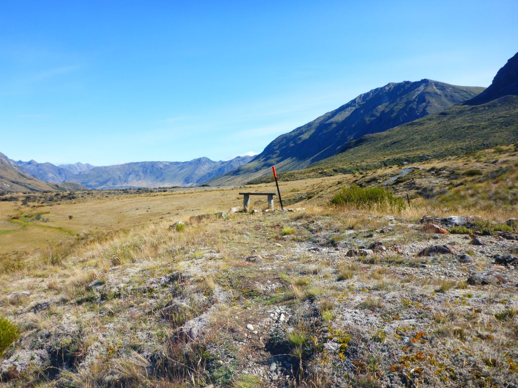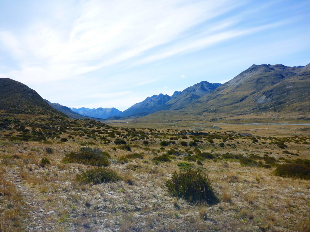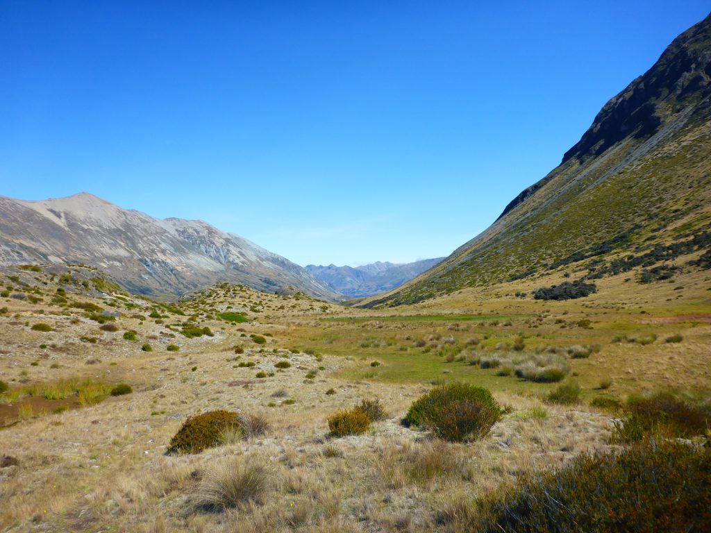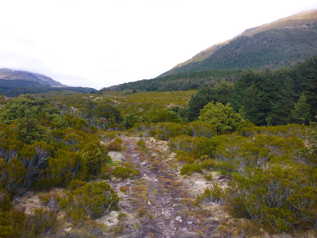 By 9:20am I set of for the next section of the TA. The weather update in the morning proclaimed a fine day ahead. The path lead away from the hut on the rise, looking into the valley that I walked through yesterday. After about 30min I had to clamber down into the valley through and back up on the other side.