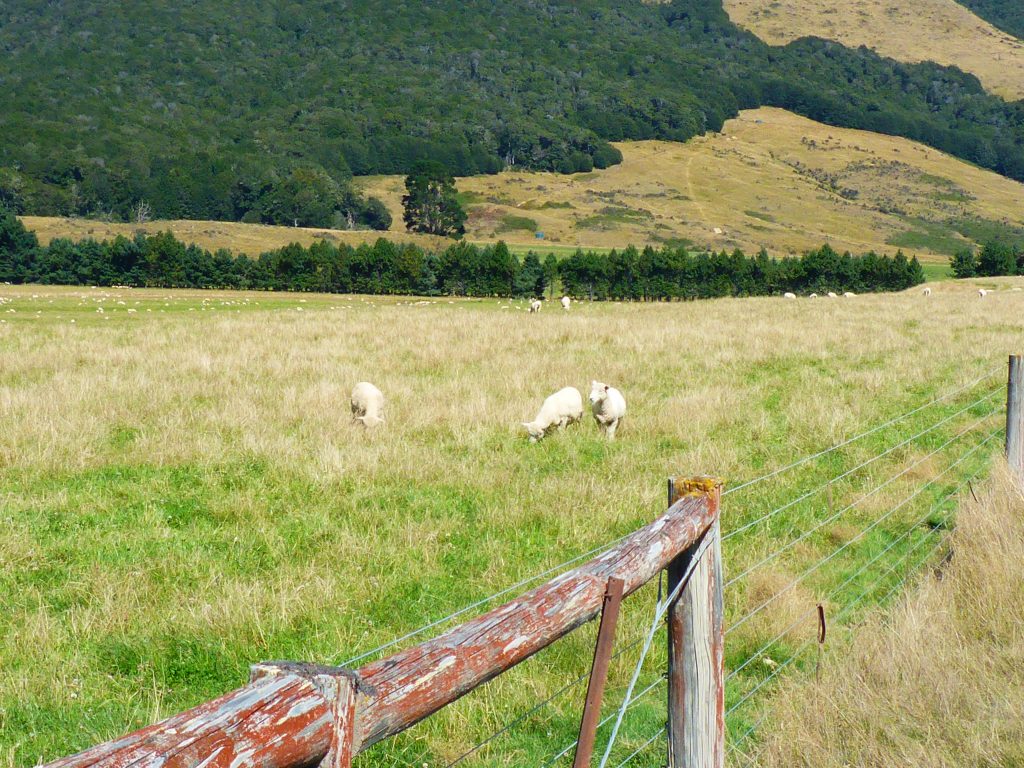The downside from following the road instead of the trail is the sun blazing down on me while hiking, but it beats continuously wet and muddy feet. Further along I met quite a few sheep feeding along the side of the road, though they always scuttled away when I cam near.