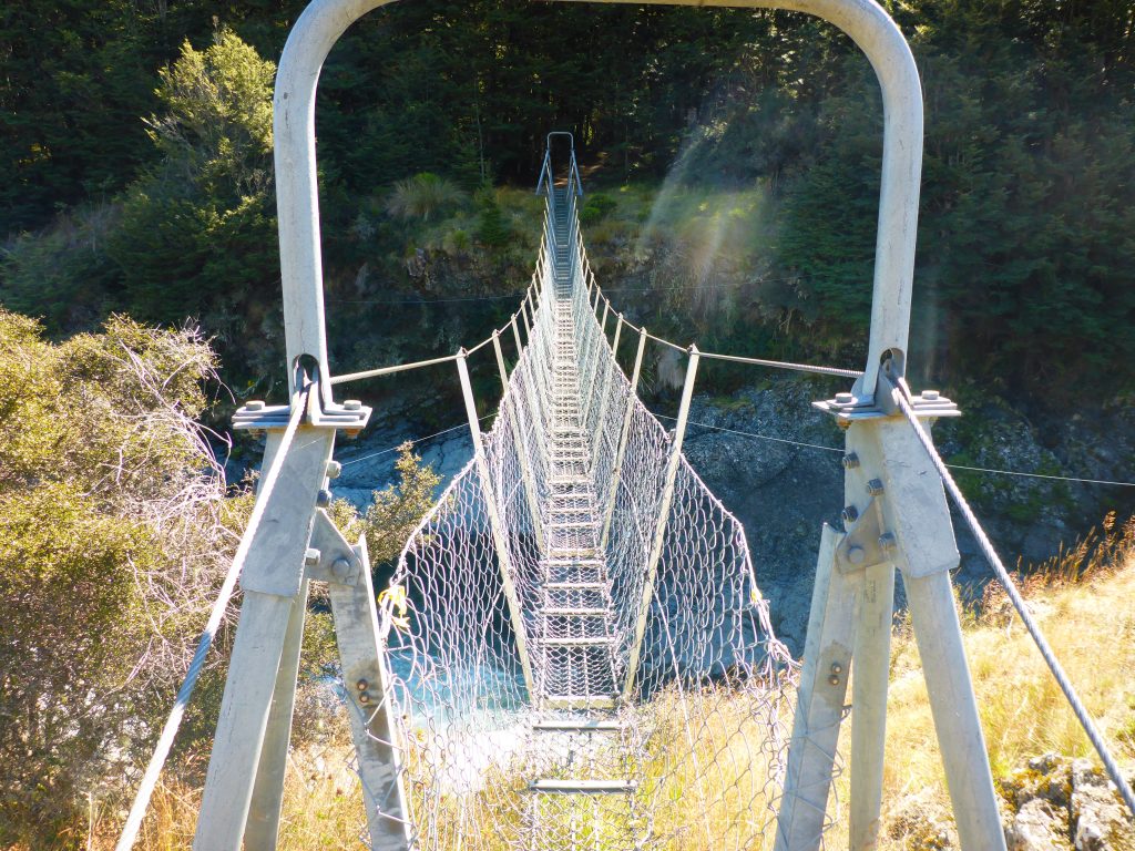 Within a short distance I reached the swing bridge crossing the river and going into the woods back to the trail. Right before the bridge was a dunny and there were a few vehicles parked up, one of the a DOC SUV.